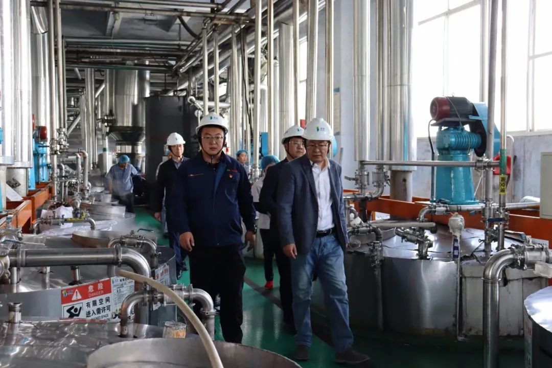 安中濤先后到萊蕪泰禾的粗提車間、精提車間、發(fā)酵車間等工作場(chǎng)地,實(shí)地了解員工的工作情況和生活情況。